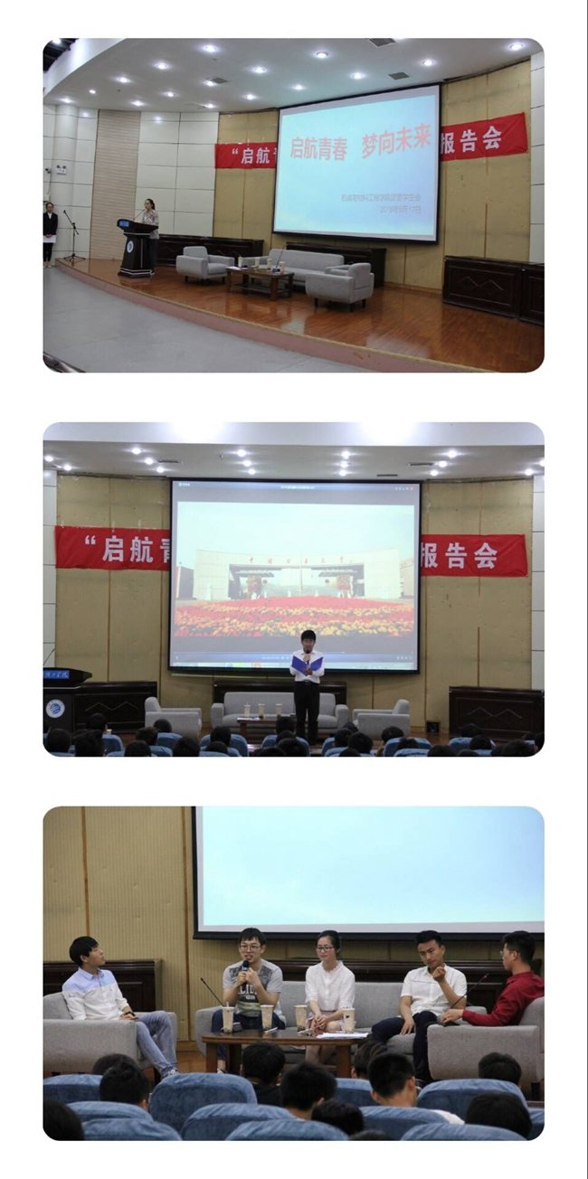 5月17日,EVO真人视讯“启航青春,梦向未来”我的青春故事报告会在图书馆报告厅成功举行。此次报告会邀请到公司2014级邱钦元、姚冰、蒋腾、苏艳四位考研成功的学长学姐与​2017级员工分享他们青春奋斗的故事,为有考研意愿的同学分享他们的经验。
