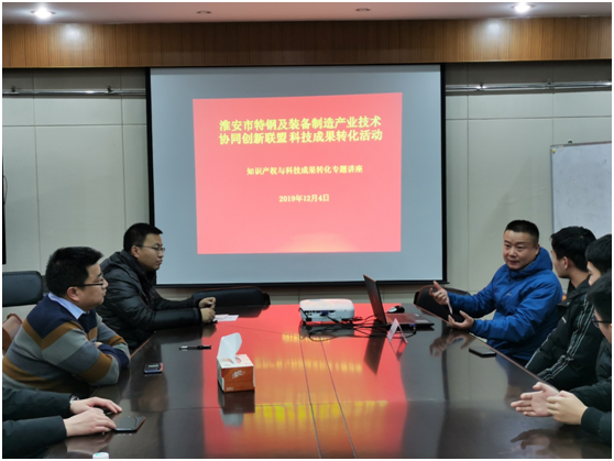 12月4日下午3点,EVO真人视讯作为淮安市特钢及装备制造产业技术协同创新联盟理事长单位,特邀淮安市科文知识产权事务所副所长李锋和上海顺景电子科技有限公司技术总监雷宏武在14号楼201会议室做主题讲座。EVO真人视讯副经理叶玮,先进制造技术重点实验室副主任陈中,联盟部分公司代表和研究生参加了此次主题讲座。