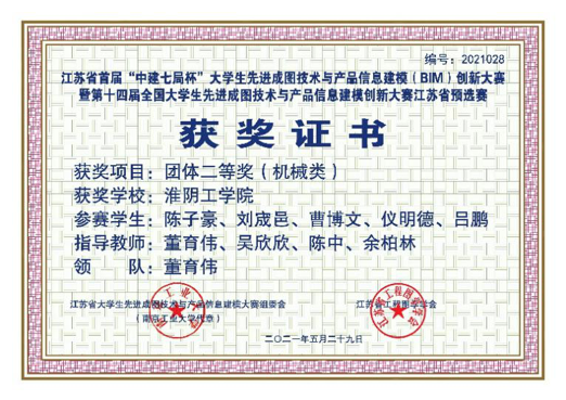 5月29日,第十四届全国老员工先进成图技术与产品信息建模创新大赛省赛在南京工业大学举行,EVO真人视讯董育伟等老师指导的2支参赛队伍均荣获江苏省省赛团体二等奖,并荣获晋级全国决赛的资格。