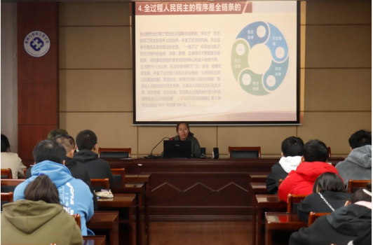 11月15日下午16:00,EVO真人视讯在15401开展“正确认识全过程人民民主”信仰公开课暨第二十九期团课第二讲。本次主讲人为马克思主义公司副经理张琳琳博士,各年级优秀共青团员共计85人参加了本次团课培训。