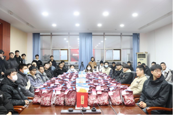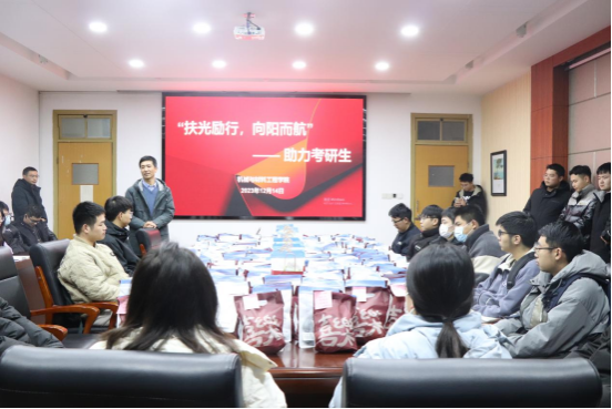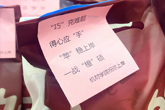 公司领导和20级辅导员将精心准备的考研加油慰问品(“巧”克难题、得心应“手”、“苹”稳上岸、一战“橙”硕)发放到每一位考研学子的手中,暖心的礼品也让在场学子倍感温暖。