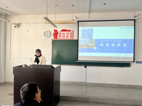 会上,王梦颖对淮安市国家大学科技园基本情况、入园条件、配套服务和政策扶持等方面进行了宣讲和阐述,并表示园区将通过提供场地、资金、导师、课程培训等方式为公司师生提供全价值链一站式服务,协助完成从项目到企业的发展。同时对2024中国·淮安创新创业大赛选拔赛的筹备情况作了详细介绍,分享了往届获奖案例,积极动员有想法、有创意、有资源的同学们踊跃参加,为想要在后期参加大赛的师生提供了思路与信心。