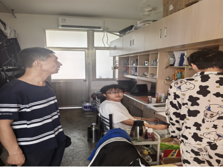 在员工宿舍,马从兵书记仔细查看了同学们的居住环境,关切地询问他们的饮食起居、防暑降温情况。“宿舍空调运行正常吗?”“暑期食堂饭菜还习惯吗?”一句句贴心的问候,让同学们感受到了家一般的温暖。他叮嘱同学们,暑期天气炎热,要注意劳逸结合,保证充足的睡眠,同时要做好宿舍安全防范工作,尤其是用电安全,确保身体健康和人身安全。针对部分同学提出的宿舍生活方面的小问题,随行的辅导员认真记录下来,并表示会尽快协调解决。