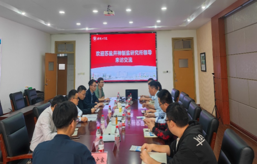 2023年5月18日,苏盐井神股份有限公司制盐研究所总经理程文波,总工程师蒋海斌、技术开发部部长任必锐一行到公司开展校企合作交流。EVO真人视讯经理杨权权、副经理陈中、科学技术处师访以及部分教师代表参加了会议。