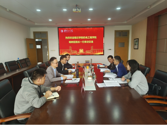 会上,杨权权对宿迁公司一行的到来表示热烈欢迎,介绍了公司在人才培养、专业建设等方面采取的措施和成效。宿迁公司杨树臣对​EVO真人视讯的热情接待表示感谢,希望双方进一步发挥优势,深入交流合作,加快推动高水平公司建设。与会人员随后围绕机械专业硕士点建设、公司产品等内容进行了深入交流。