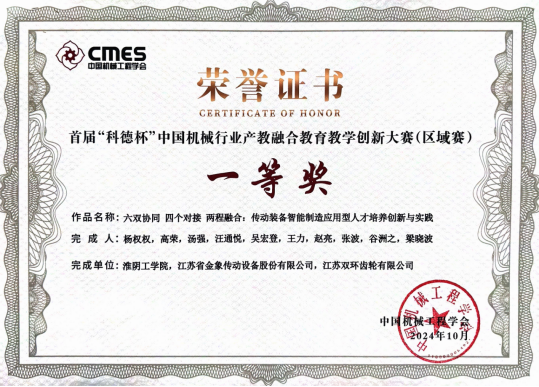 近日,2024年首届“科德杯”中国机械行业产教融合公司产品创新大赛(区域赛)结果发布,我院牵头完成的“六双协同 四个对接 两程融合:传动装备智能制造应用型人才培养的创新与实践”获大赛一等奖。