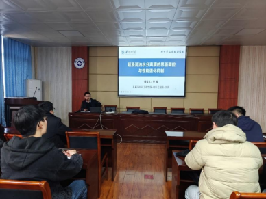 李晖博士长期致力于环境功能膜材料的研究,在超浸润油水分离膜领域取得了丰硕成果。报告中,李博士从仿生界面设计出发,系统阐述了超浸润油水分离膜的设计原理与性能强化机制,重点介绍了原位微气泡除污和界面高浓度离子破乳技术,展示了如何通过智能界面调控实现油水混合物的高效分离。此外,李博士还分享了跨尺度分离多种污染物的最新成果,展示了多功能膜材料在同步去除油水混合物中多种污染物的潜力。李晖博士的报告内容丰富,既有理论深度,又有实践指导意义,引发了在场师生的浓厚兴趣。