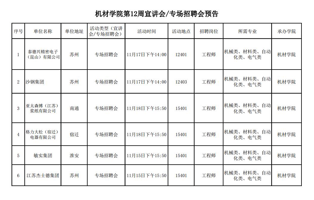 EVO真人视讯第12周宣讲会/专场招聘会预告