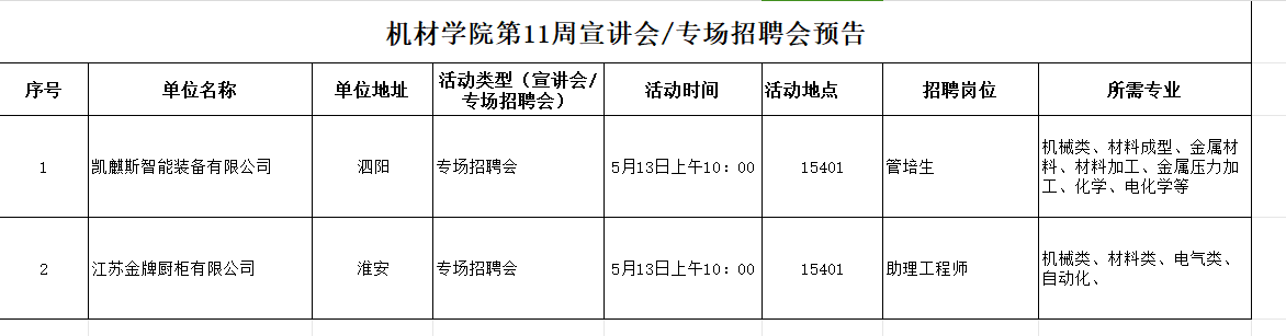 EVO真人视讯第11周宣讲会/专场招聘会预告