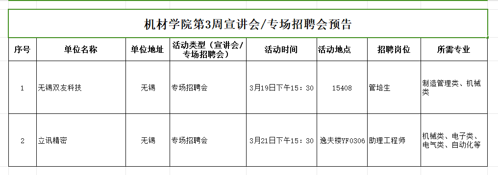 EVO真人视讯第3周宣讲会/专场招聘会预告