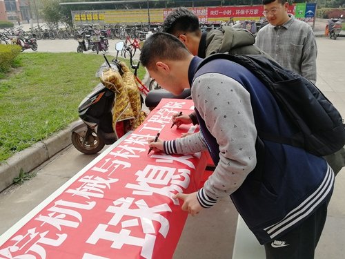 五食堂门口,同学们积极在签名海报前集体留影、签名,表达了保护环境的决心。阳光明媚,清风微拂,同学们在团委员工会外联部和小红帽志愿者队各部长的带领下,热烈讨论着两会环保热点话题,向来往同学科普环保小知识,以提高员工环保意识,培养同学们奉献社会的责任感。最后,团委员工会外联部及小红帽志愿者队全体成员和参与前来签名的同学一起在签名墙前合影留念,并喊出“熄灯一小时,燃亮生态未来”的口号。