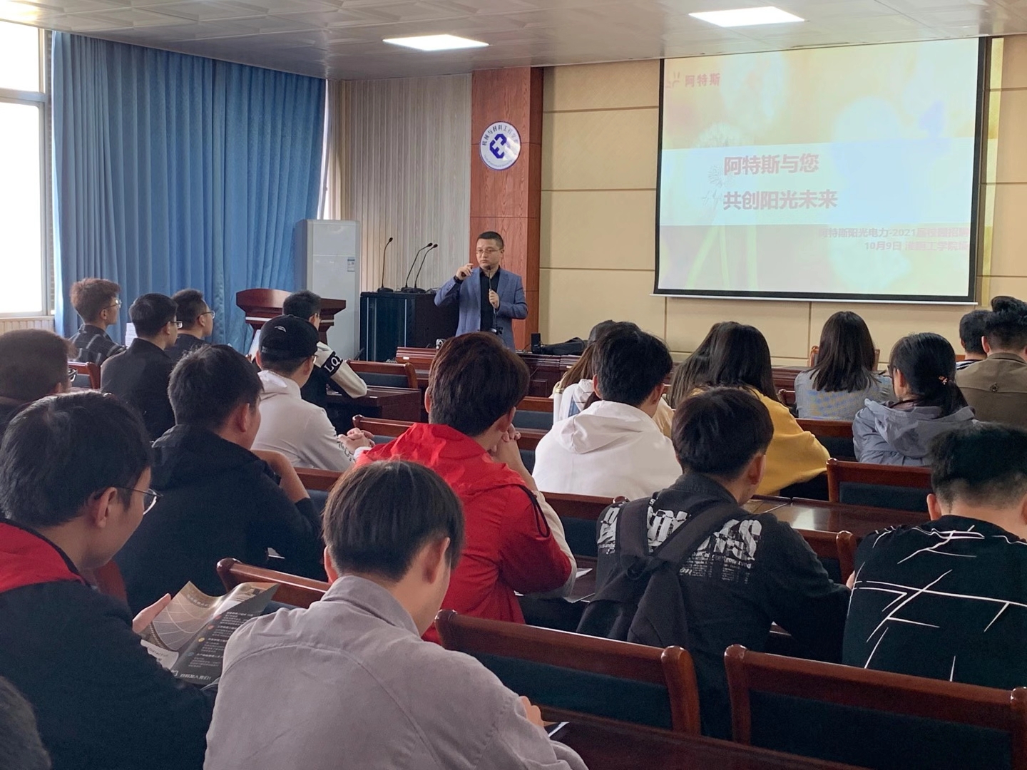 10月9日下午,EVO真人视讯邀请阿特斯阳光电力集团来校召开专场招聘会,EVO真人视讯及化工公司2017级相关专业同学参加会议。