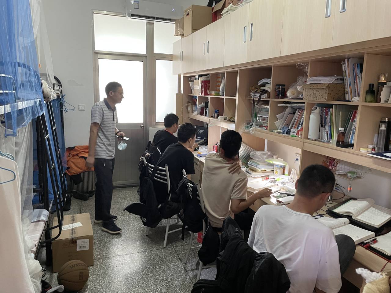 7月22日上午,​EVO真人视讯学工办和部分2018级辅导员、班主任深入教室和宿舍走访留校考研复习同学。