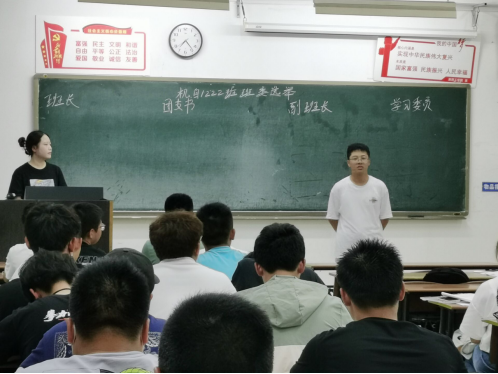 会上,各班班主任再次通报了当前疫情防控形势,要求同学严格遵守公司的相关规定,并对近期班级工作做了安排。随后,班主任解读了班委的设置情况,鼓励同学们积极走上讲台,展示自我。候选人依次上台发表竞选演说,通过同学们民主投票,班长、团支书、生活委员等十余名竞选人脱颖而出。
