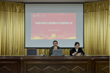 4月25日晚,EVO真人视讯在图书馆报告厅和逸夫楼YF0404教室采取线上线下结合的方式召开2022级年级大会,22级辅导员郁大同、纪佳和全体同学参加会议。