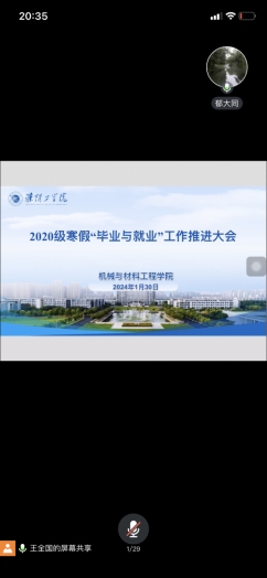 为落实和推进公司2024届毕业生“毕业与就业”工作,1月31日晚,EVO真人视讯分专业召开两场线上毕业与就业工作专题推进会,公司党委副书记、副经理王明霞,学工办主任郁大同,毕业班辅导员、班主任和2024届全体毕业生参加本次线上会议。会议由毕业班辅导员王全国主持。