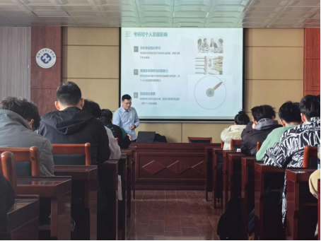 金凯分别从考研内容、考研意义、就业机会三个方面进行解读,并指出青春弥足珍贵,大学是让青春尽情绽放、让梦想肆意飞翔的殿堂。让迷茫与稚嫩飘散在风里,现在要承梦起航,让自己的青春,在大学这个舞台尽情释放光彩,即便没有太阳的照耀,也要闪耀自己的光芒。