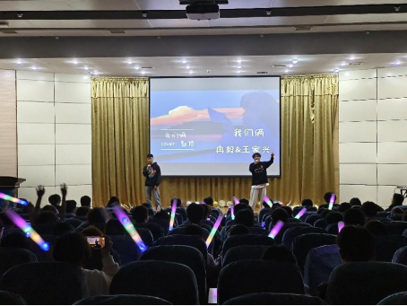 赛场上,刘文迪和徐闽钏演唱的《等你下课》打动了同学们,张攀演唱的《慢慢》深受同学们喜欢,同学们纷纷打开手机上的手电筒,伴随着音乐的节拍摇动。期间,幽默诙谐的猜歌小游戏,又将现场分为推向了高潮。