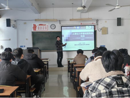 讲座围绕理论力学与材料力学知识框架展开,系统梳理静力学、运动学及动力学核心理论,结合桥梁设计、高速列车动力学等工程案例,阐释力学原理的实际应用。朱坎通过ANSYS仿真技术演示不同截面梁的受力性能,强调“力学驱动创新”的理念。此外,现场深入解析第十三届全国周培源力学竞赛真题,从几何关系、力平衡到动力学分析,层层拆解复杂机构问题,并总结答题策略与技巧,助力员工高效备。