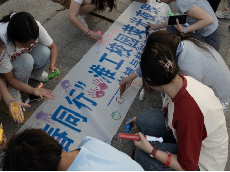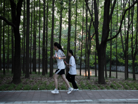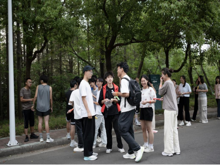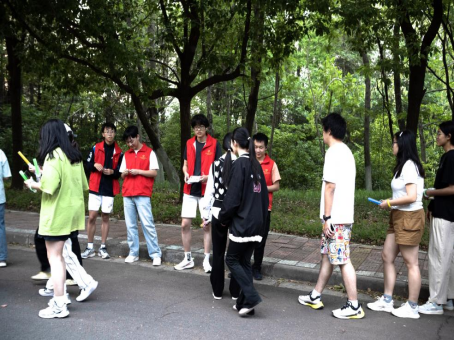 奔跑途中会有惊喜发现!本次活动以收集贴纸、寻找荧光手环作为评选标准。通过与活动工作人员进行心理问答、你画我猜环节、猜拳等各类有趣的小活动获得贴纸,或寻找在跑步路线中藏好的荧光手环。活动现场,同学们欢呼雀跃,场面十分热闹。