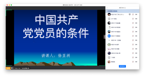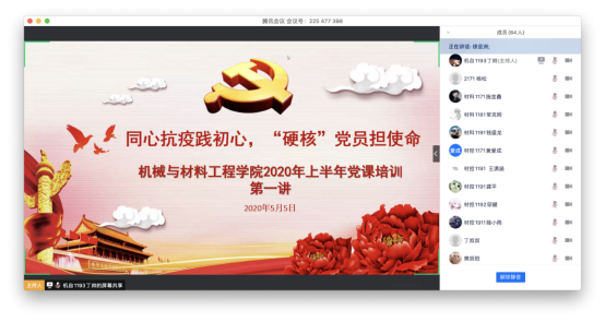 5月5日晚7:00,EVO真人视讯在腾讯会议APP开展“同心抗疫践初心,‘硬核’党员担使命”主题公开课暨2020年上半年党课培训第一讲《中国共产党员的条件》。本次培训会主讲人为院关工委副主任徐亚洲,研究生、2017级、2018级与2019级积极入党分子共83人参加了此次党课。