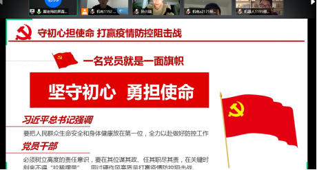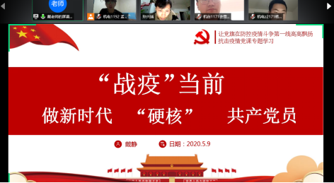 5月9日晚7:30,EVO真人视讯在腾讯会议APP开展“同心抗疫践初心,‘硬核’党员担使命”主题党课暨2020年上半年党课培训第五讲《“战疫”当前 做新时代“硬核”共产党员》。本次培训会主讲人为公司党务秘书戴静老师,研究生、2107级、2018级与2019级员工参加了此次党课。
