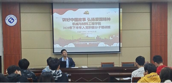 为使广老员工了解习近平总书记提出的重大思想观点,丰富对党的理论创新成果的认识,10月7日晚7:00,EVO真人视讯于15401开展“讲好中国故事,弘扬爱国精神”主题党课暨2020年下半年党课培训第三讲,本次培训主讲人为​公司党委书记马从兵,本次党课题目为”学习习近平新时代中国特色社会主义思想——做新时代有为青年“。研究生、2018级、2019级入党积极分子参加了本次培训。