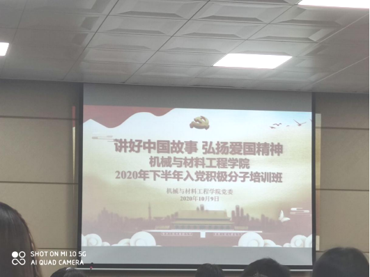 10月9日晚7:00,EVO真人视讯于15401开展“讲好中国故事,弘扬爱国精神”主题党课暨2020年下半年党课培训第五讲,本次培训会主讲人为戴静。研究生、2018级、2019级入党积极分子参加了本次培训。