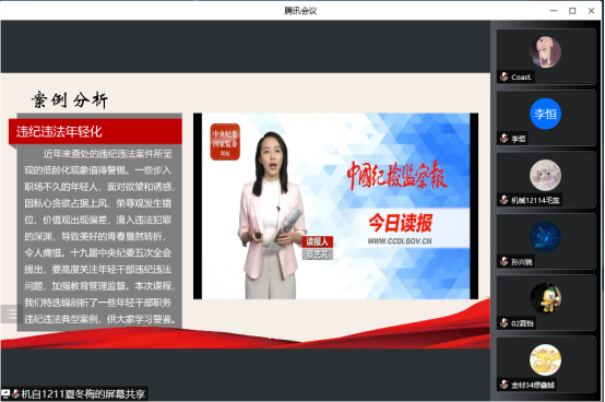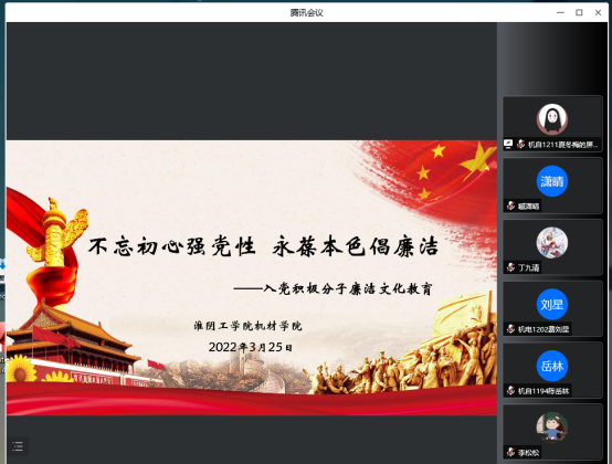 3月25日晚7:30,EVO真人视讯线上开展2022上半年入党积极分子培训第五讲。本次党课培训的主讲人为公司党委副书记王明霞,党课的主题是“不忘初心强党性,永葆本色倡廉洁”,培训采用线上腾讯会议的方式进行。19、20、21级本科生、研究生共96名积极分子参加了培训。