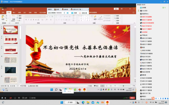 12月1日晚7:00,EVO真人视讯线上以线上的形式开展2022下半年入党积极分子第四讲,主题为”不忘初心强党性,永葆本色倡廉洁“。本次党课主讲人为公司党委副书记王明霞。