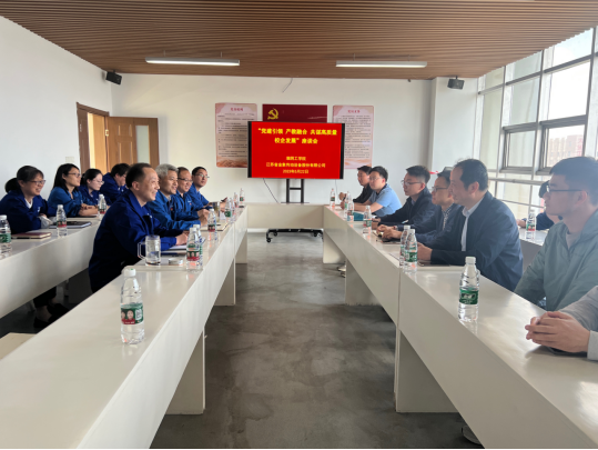 董建峰对杨权权一行的到来表示欢迎,并介绍了江苏省金象传动设备股份有限公司的发展历程、产品特色、企业文化、人才需求、技术优势与需求。在党建工作方面,介绍了党委中心组学习制度、季度政工例会制度、党员挂牌上岗、党员社会实践、评先奖优制度、党员先锋岗、党支部百分考核制度、党小组长“12345”工作法等工作经验。