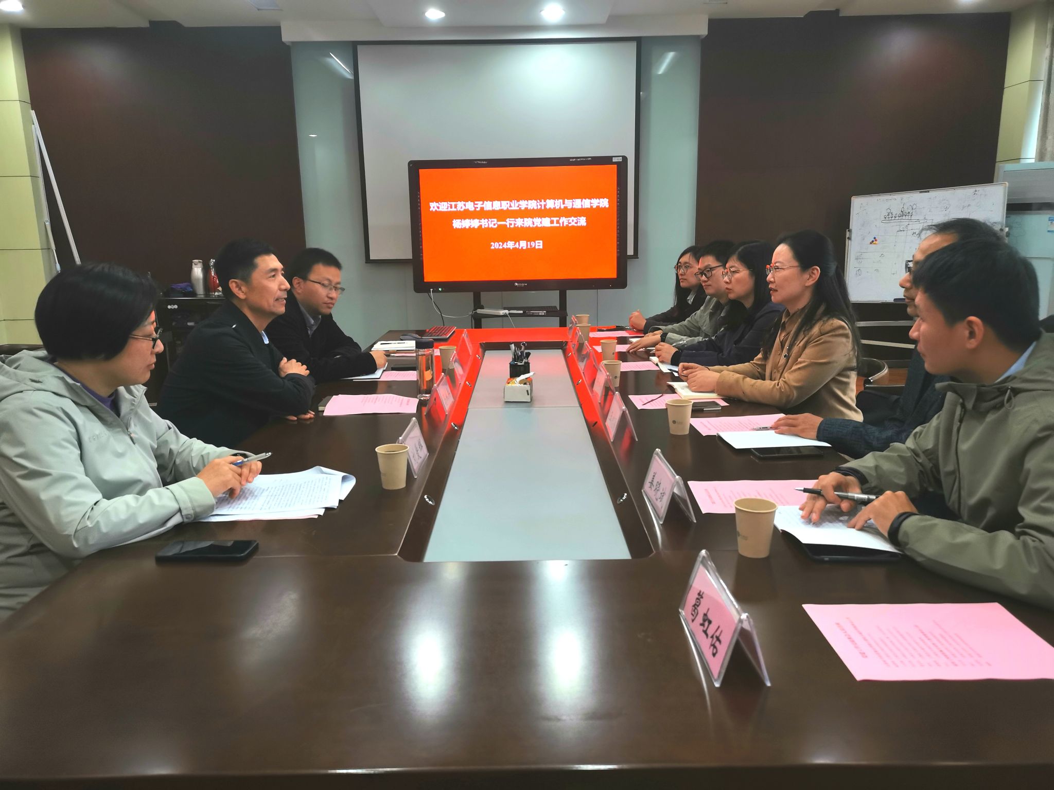 4月19日,江苏电子信息职业公司计算机与通信公司党总支杨婷婷书记一行到公司材料工程系党支部进行党建工作交流。