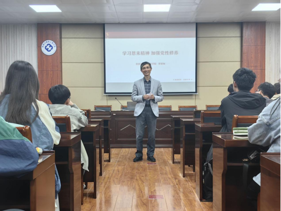罗老师以“学习恩来精神,加强党性修养”为主题,分别从“重温周恩来一生,领略伟人风范”、“悟透周恩来精神,凝聚前行力量”、“传承周恩来精神,彰显育人特色”等三个方面对同学们进行了讲解。
