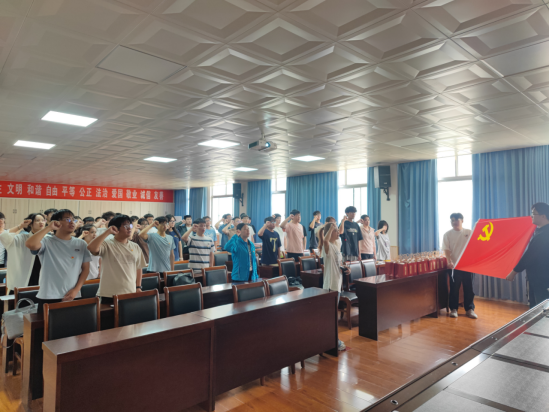“我志愿加入中国共产党,拥护党的纲领,遵守党的章程……”毕业生党员们在公司党委副书记王明霞的带领下举起右拳,庄严宣誓,重温入党誓词。一句句铿锵有力的誓言,在活动现场久久回荡,唤醒了党员们入党时的初心与使命,让他们更加坚定为共产主义事业奋斗终身的信念。
