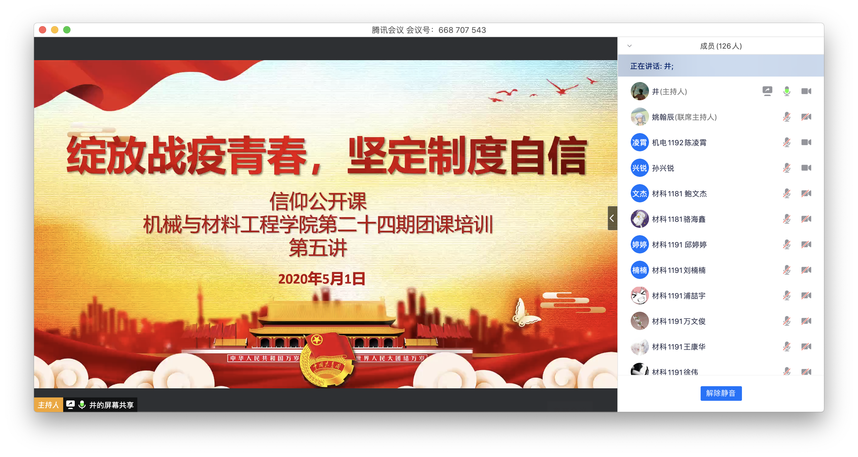 本次信仰公开课属于新思想公开课,旨在使同学们坚定信心,科学防治,发扬奉献、友爱、互助、进步的志愿精神,不断在磨难中成长,彰显青年担当。