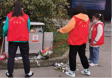 志愿者们到达集合点,拿着扫把、撮箕等劳动工具对校园的绿化带、马路及卫生死角开展了认真彻底地清扫和整理。校园里到处是同学们认真清扫、拾捡垃圾的忙碌身影,勾勒出春天里一道亮丽的风景线。经过同学们分工合作、井然有序地打扫,整个校园呈现出干净整洁的新面貌。