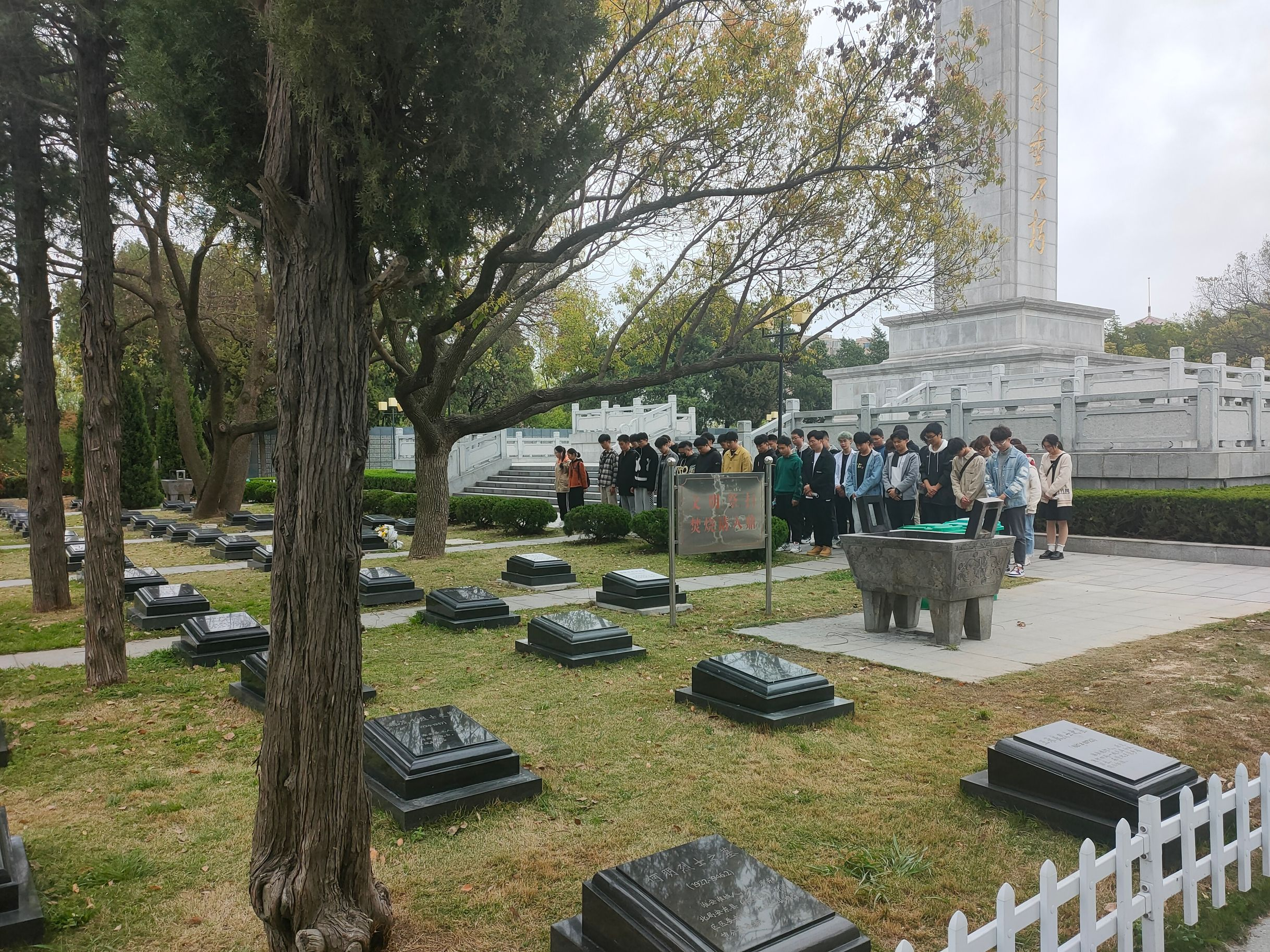 同学们来到庄严的烈士纪念碑前,举行了肃穆的祭扫仪式。在负责人的带领下,同学们有序的参观了革命烈士陵墓,并在烈士墓碑前默哀、鞠躬,寄托对烈士的哀思,以示对先烈们的缅怀和敬意,他们也深切地体会到,今天的幸福生活是先烈们用生命换来的。