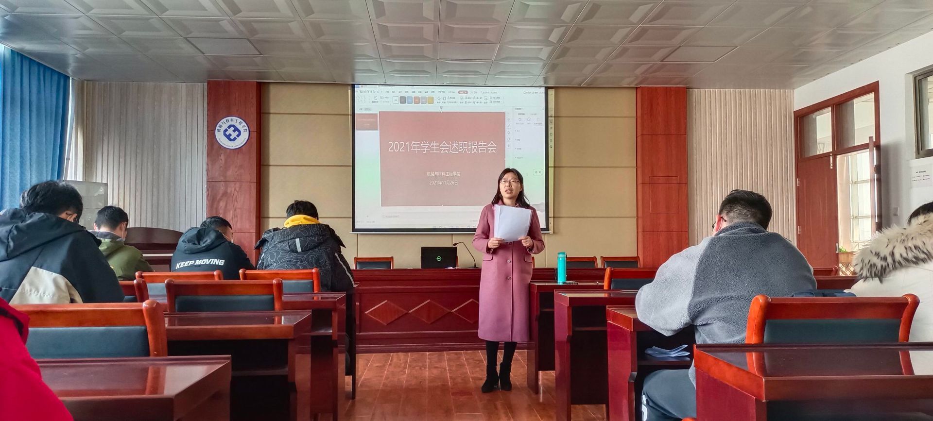11月26日中午12:30,EVO真人视讯在15401召开第二十二届员工会述职大会,公司党委副书记王明霞、学工办主任郁大同、团委副书记郭巧会、第二十二届员工会成员及部分班级代表参加了此次会议。
