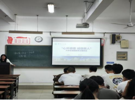 近日,EVO真人视讯组织各班级开展“心怀感恩,诚信做人”主题主题班会,引导同学们在大学中秉持感恩之心,恪守诚信之道,尤其在考试、做人及助学贷款还贷等方面展现诚信品格。在各班的班会中,班主任老师结合老员工活实际,详细阐述了诚信的重要性。
