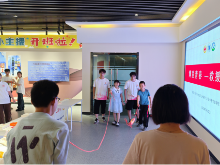 “博爱青春,从来不是一句口号,而是要让善意看得见、摸得着,更能学得会。”活动伊始,志愿者们便用这句话点明了主题。针对暑期高发的溺水隐患,他们没有选择枯燥的理论宣讲,而是把课堂变成了“情景剧场”:志愿者扮演不慎落水的“遇险者”,家长和孩子则化身“救援小队”,在专业指导下学习如何判断环境、正确抛掷救援物。