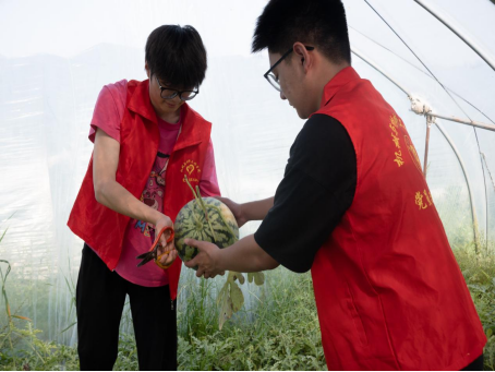 种植西瓜的大哥向志愿队成员详细介绍了西瓜种植的原理及技巧,基于植物生长规律,需满足光、温、水、气、肥等条件。原理上,西瓜喜光喜温,充足光照利于糖分积累,昼夜温差大也能提升甜度;根系发达,需疏松透气土壤保障呼吸。在他的带领下,志愿者依次体验了采摘西瓜的方法,志愿者们在大棚里挥汗如雨,忙活得不亦乐乎,最终成功帮助大哥采摘完了所有成熟的西瓜。