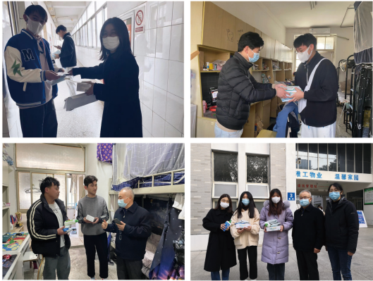 在发放抗疫物资中,几位老师和同学们进行交流,询问同学们当前的困难,叮嘱同学们严格遵守公司疫情防控相关规定,配合公司相关疫情防控管理工作,同时要做好宿舍卫生、个人防护,保持室内通风。