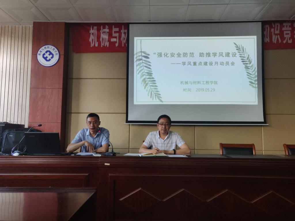 5月29日下午,EVO真人视讯在15401报告厅召开本学期学风重点建设月活动动员会,公司党委李炜副书记、学工办郁大同主任及各班班长、团支书、学习委员参加会议。