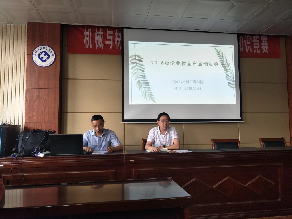 5月29日下午,EVO真人视讯在15401报告厅召开2016级学业检查布置动员会,公司党委李炜副书记、学工办郁大同主任及16级各班班长、团支书、学习委员参加会议。