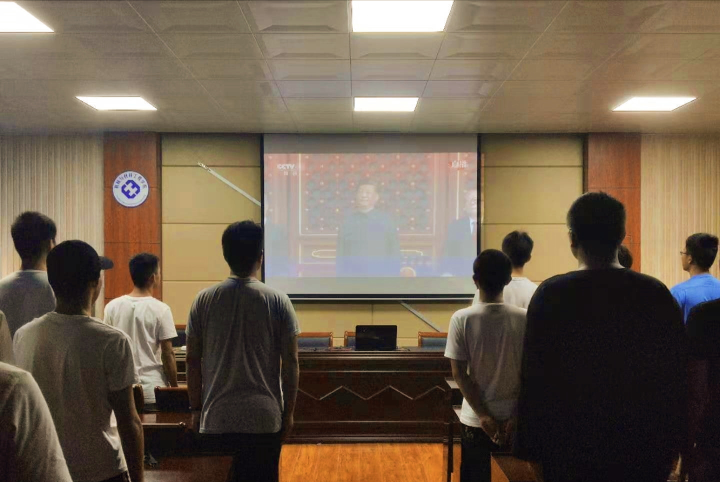 上午10时,伴随着礼炮的轰鸣声,隆重的庆祝大会正式开始,全体同学肃然起立,跟随着电视画面高唱中华人民共和国国歌。中共中央总书记、国家主席、中央军委主席习近平在大会上发表重要讲话,随后举行了盛大的阅兵式和群众游行。