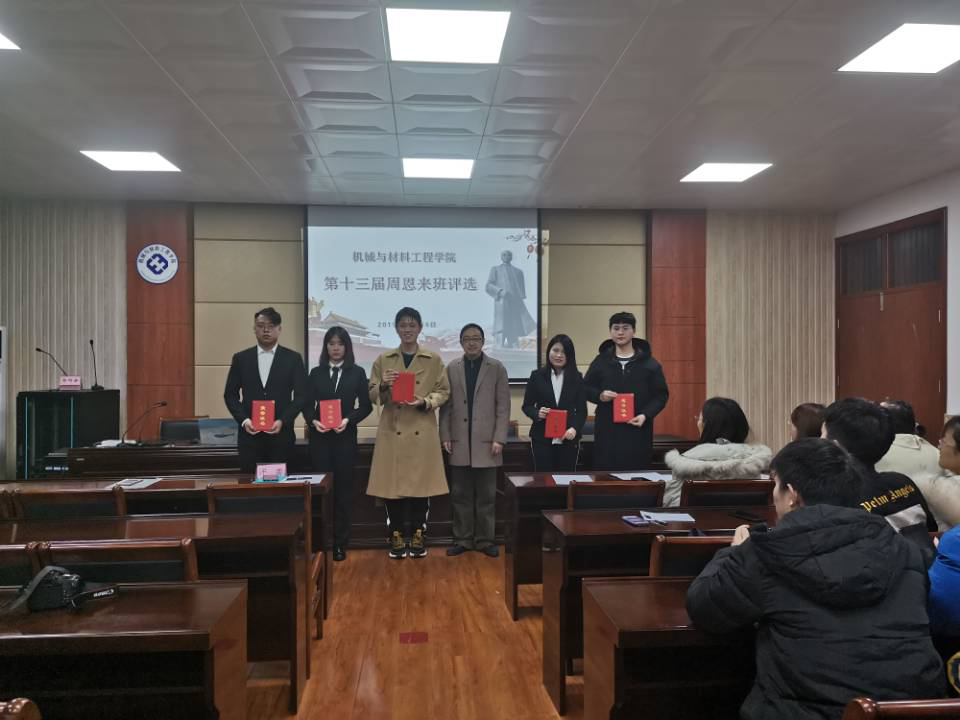 12月16日下午,公司举行了第十三届“周恩来班”评选活动。机自1171、机自1174、机自1183、机器人1181、材控1181五个班级获得院第十三届周恩来班。公司副书记、副经理李炜、学工办主任郁大同、部分辅导员和员工干部代表参加了本次评选活动。