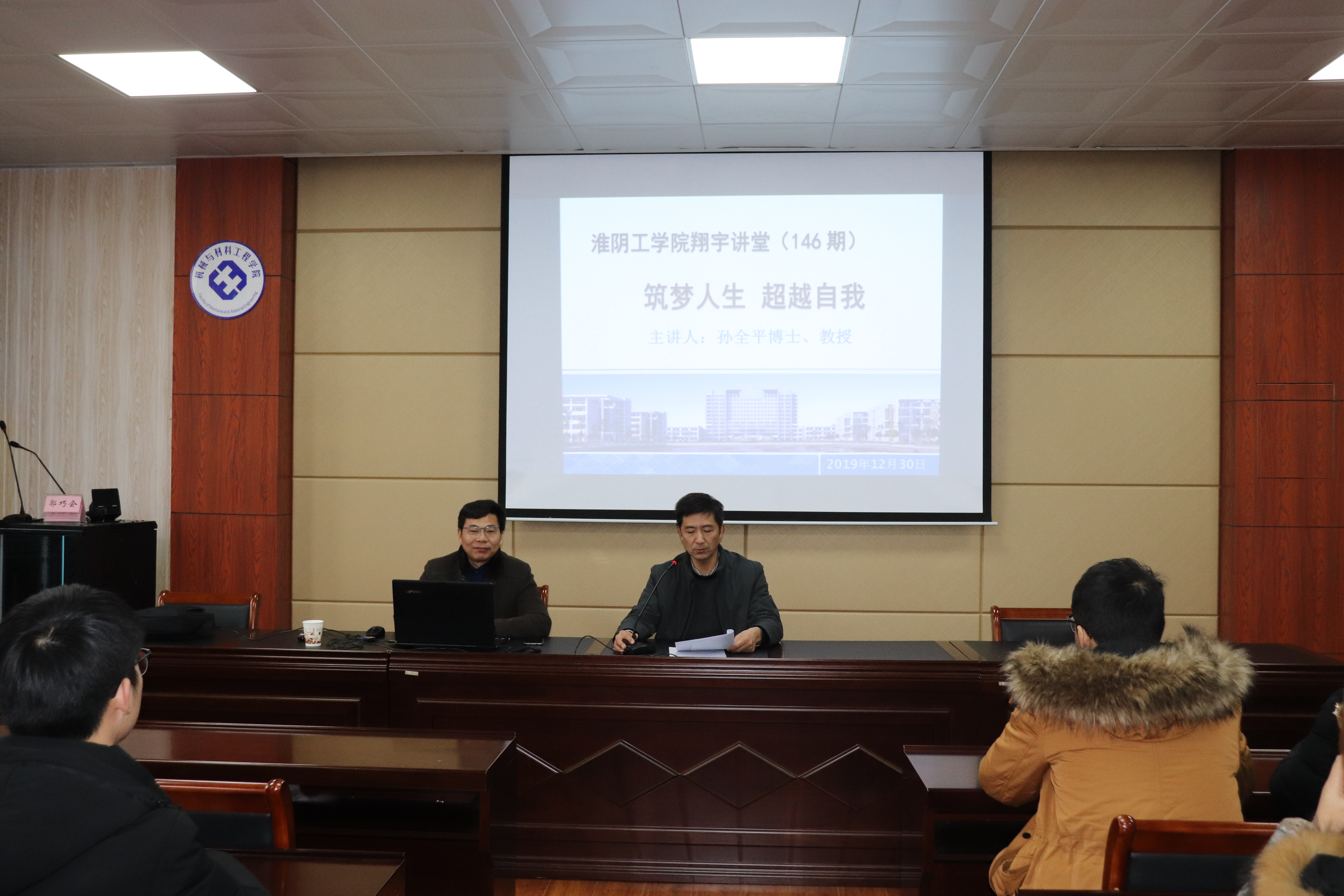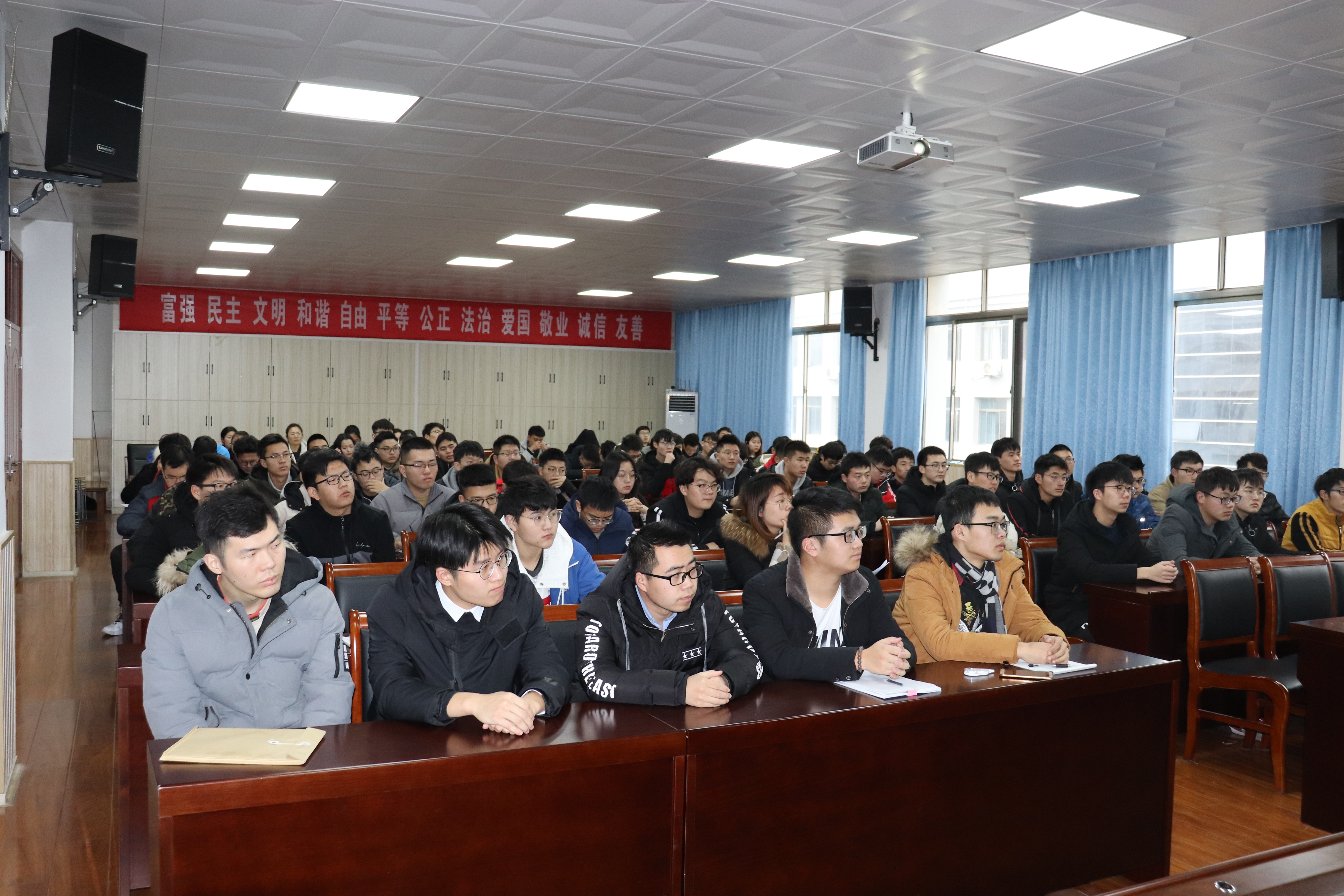 12月30日下午,EVO真人视讯在15401学术厅举办“奋斗的我,最美的国”新时代先进人物进校园活动,全国五一劳动奖章获得者孙全平教授做了题为“筑梦人生 超越自我”的主题报告,​EVO真人视讯老员工骨干、入党积极分子参加报告会,报告会由公司党委书记马从兵主持。