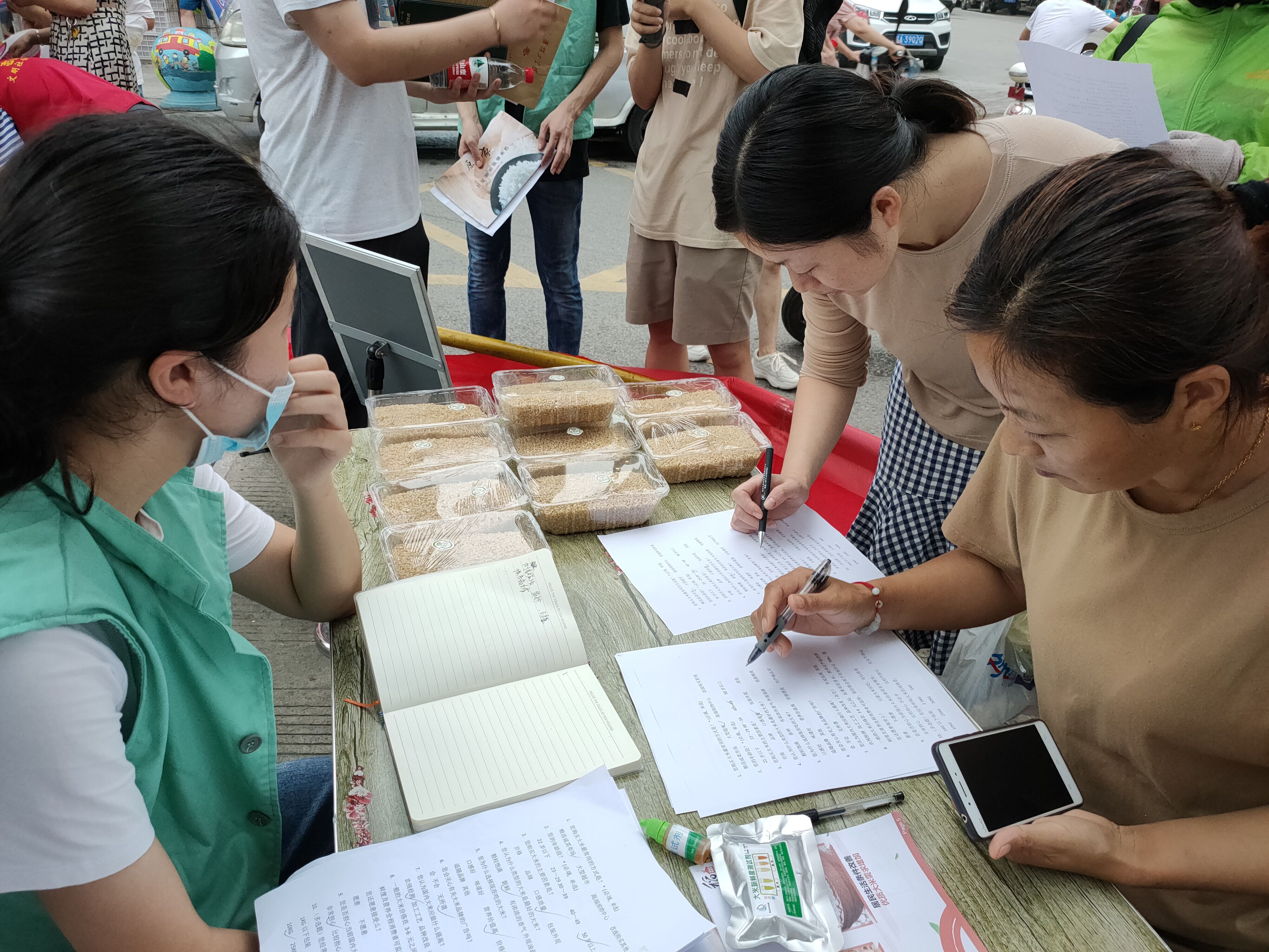 活动中,李炜副书记与队员们积极引导附近居民做问卷调查,就食用大米的相关信息与居民们进行宣传与沟通。居民们十分热情,纷纷上前填答问卷,并向队员们反映出买米不便、大米的食用安全得不到保证等问题,希望稻家团队的项目产品能早日在社区推广,满足生活的需求。特别是疫情期间,能够满足居民在家门口购买新鲜大米的需求。