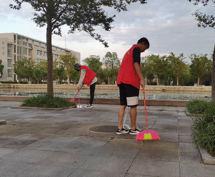 活动开始,由各班负责人对参与的同学进行简单的分工,分时段分区域对校园进行清扫。同学们到达各自负责的区域后,对公司地面开展了认真彻底的清扫,校园里都是同学们辛勤忙碌的身影。在大家不怕苦、不怕累的共同努力下,整个校园焕然一新。
