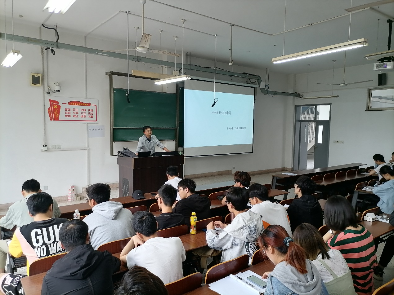 5月19日下午,EVO真人视讯在YFJ0104教室开展创新大讲堂第二讲——加快科技创新。本次讲座由公司机电中心主任姜海林主讲,2018级员工参与了本次讲座。